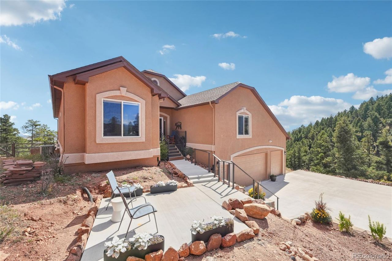 Stunning Custom Raised Ranch in Prestigious Woodmoor Mountain with Breathtaking Mountain ViewsExperience luxury and comfort in this beautifully updated 4-bedroom, 4-bathroom home with bonus rooms, walkout basement, and 3-car garage, set on a sprawling 4-acre lot in the gated Woodmoor Mountain community. Thoughtfully remodeled with over $250K in updates, every detail has been considered for modern living.The fully finished basement adds 1,200 sq. ft. of versatile living space with a new bedroom, full bath, family room, and workout area?all permitted and professionally designed, perfect for multigenerational living or entertaining. The gourmet kitchen features high-end appliances, refinished cabinets, Corian and quartz countertops, and a performance exhaust fan, making it ideal for cooking and gatherings.A newly converted gas fireplace with elegant stone surround enhances the living room, while brand-new carpeting in bedrooms and office creates a fresh, inviting feel. The primary suite is a spa-like retreat with custom built-ins for organized living, and all bathrooms have been updated with modern finishes.An automatic whole-home generator powers the home during outages and runs on propane with dual tanks for extended capacity. A large fenced area with added wire mesh provides an ideal space for dogs or secure outdoor use.Updated mechanical systems and a newer roof provide peace of mind. Enjoy the privacy of a tranquil, gated setting while remaining centrally located: 17 minutes to I-25 via Palmer Divide, 3 miles from Palmer Lake, and just 30 minutes from Castle Rocks shopping and entertainment. Bordering Pike National Forest, this home offers easy access to hiking, biking, and outdoor recreation.Luxury, style, and convenience come together in this one-of-a-kind home?ready for you to move in and enjoy.