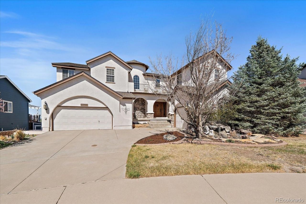 Beautifully maintained 5-bedroom, 4-bath home located at the end of a quiet cul-de-sac in one of Parkers most desirable neighborhoods with golf course views. The bright, open floor plan features expansive windows that fill the home with natural light. The kitchen offers granite countertops, high-end appliances, a large island, abundant cabinetry, and a casual dining nook.The main level includes a formal living room, formal dining room, and a spacious family room, creating multiple areas for gathering and entertaining. Flexible work-from-home spaces include a main-floor study, an office off the kitchen, and additional study areas near the primary suite and kitchen. An upstairs family room provides additional living space, while four fireplaces throughout the home add warmth and character.Additional highlights include a theatre room, wine cellar, wine chiller, and a walk-out basement. Two covered decks overlook a beautifully landscaped and private backyard setting, offering plenty of space to relax or entertain. The front entry features a welcoming pond waterfall that enhances the homes curb appeal.Situated across from the 18th fairway of Black Bear Golf Course, with access to community pool, golf, and neighborhood trails, and just a short drive to downtown Parker, shopping, dining, and local amenities.