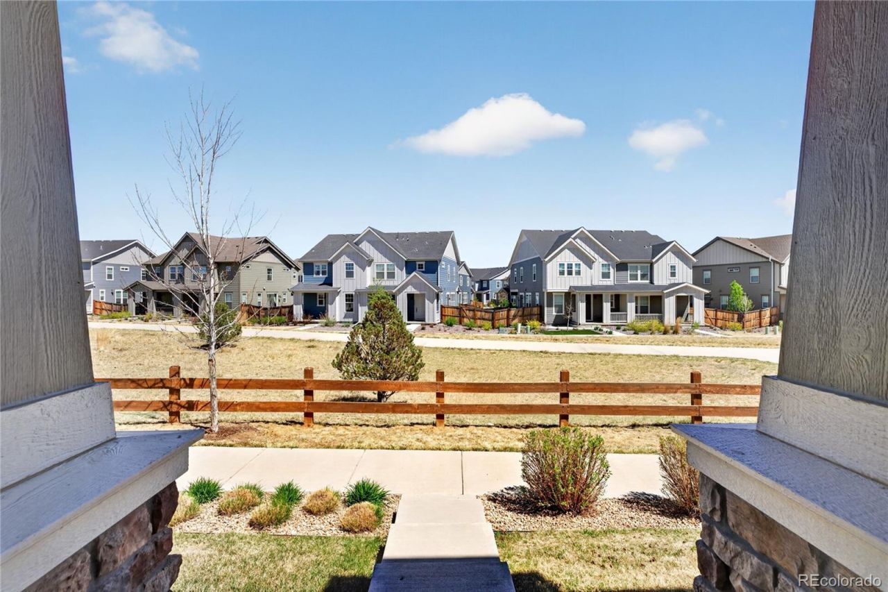 Discover the perfect blend of quiet comfort and modern convenience in this stunning end-unit home within the highly desirable Villas at Northpark community. Situated in a premier location, this residence faces a lush greenbelt and features no shared fencing on the side, offering a level of privacy and openness that is rare for attached living. The professionally landscaped front entry leads you into a bright, open-concept main floor designed for easy living. The gorgeous kitchen is a true standout, featuring chic white cabinetry, stainless steel appliances, durable Corian countertops, and a convenient breakfast bar. The kitchen flows seamlessly into the dining and living areas, where sliding glass doors open to a lovely sunny patio, the perfect spot for grilling or soaking up the Colorado sun. A half-bath and direct access to the attached 2-car garage complete the main level. Upstairs, a large, versatile loft provides the perfect space for a second living room, home office, or fitness area. The primary suite serves as a private sanctuary with its own en-suite bath and a spacious walk-in closet. An additional well-sized bedroom, a full bathroom, and a conveniently located laundry room round out the upper level. Located in a quiet, friendly community with excellent local schools, this home offers an unbeatable lifestyle. You are just minutes away from major highways, top-tier hospitals, and premier shopping, while being steps from local trailheads and outdoor recreation. Enjoy the peace of a tucked-away neighborhood with the ease of access to get anywhere you need to go!